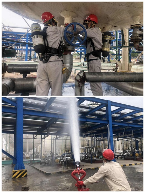 此次安全月演練以突擊形式展開,以重大危險源專項演練,模擬收發(fā)油品裝卸車冒油、著火,液化氣鶴管斷裂等事故處理,演練要求罐區(qū)、收發(fā)及后勤人員整體聯(lián)動,全面檢驗部門應急救援能力,強化全員應急水平,從而增強專業(yè)安全技能,筑牢安全根基。