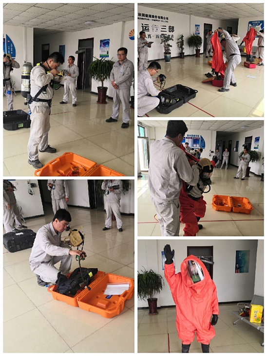 安全比武活動內(nèi)容分別為空氣呼吸器穿戴及防護服穿戴,此活動重點檢驗員工對應急器材的掌握情況,以及在突發(fā)應急情況下快速準確穿戴防護用品的能力。比賽期間,參賽選手緊抓比賽要點,梳理檢查、佩戴、調(diào)整、確認四個操作環(huán)節(jié),不時對佩戴技巧和要點難點進行交流,共同探討如何提升安全技能水平。