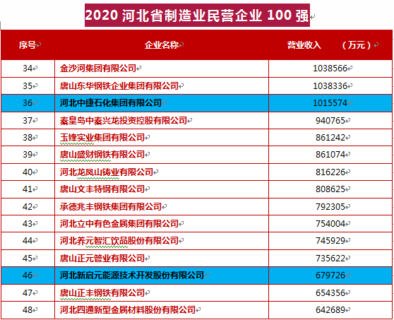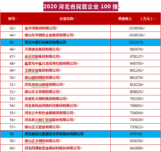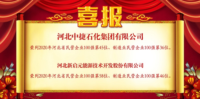 新啟元公司訊(通訊員 王世明)9月25日,河北省民營企業(yè)百強暨民營企業(yè)社會責(zé)任報告發(fā)布會上,河北省工商聯(lián)發(fā)布了2020年河北省民營企業(yè)100強榜單、制造業(yè)100強榜單、服務(wù)業(yè)100強榜單。河北中捷石化集團有限公司、河北新啟元能源技術(shù)開發(fā)股份有限公司榜上有名。